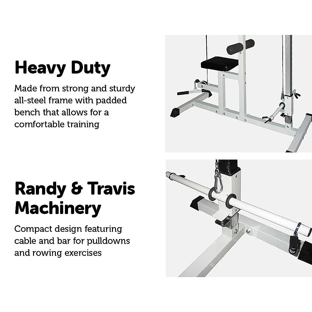 When you're serious about your fitness, but don't have a huge home gym to train in, this compact home fitness gym from Randy & Travis Machinery is the perfect solution. With a padded bench that allows you to train in comfort, this gym features a cable and bar, allowing you to do pulldowns and rowing exercises right in your own home.